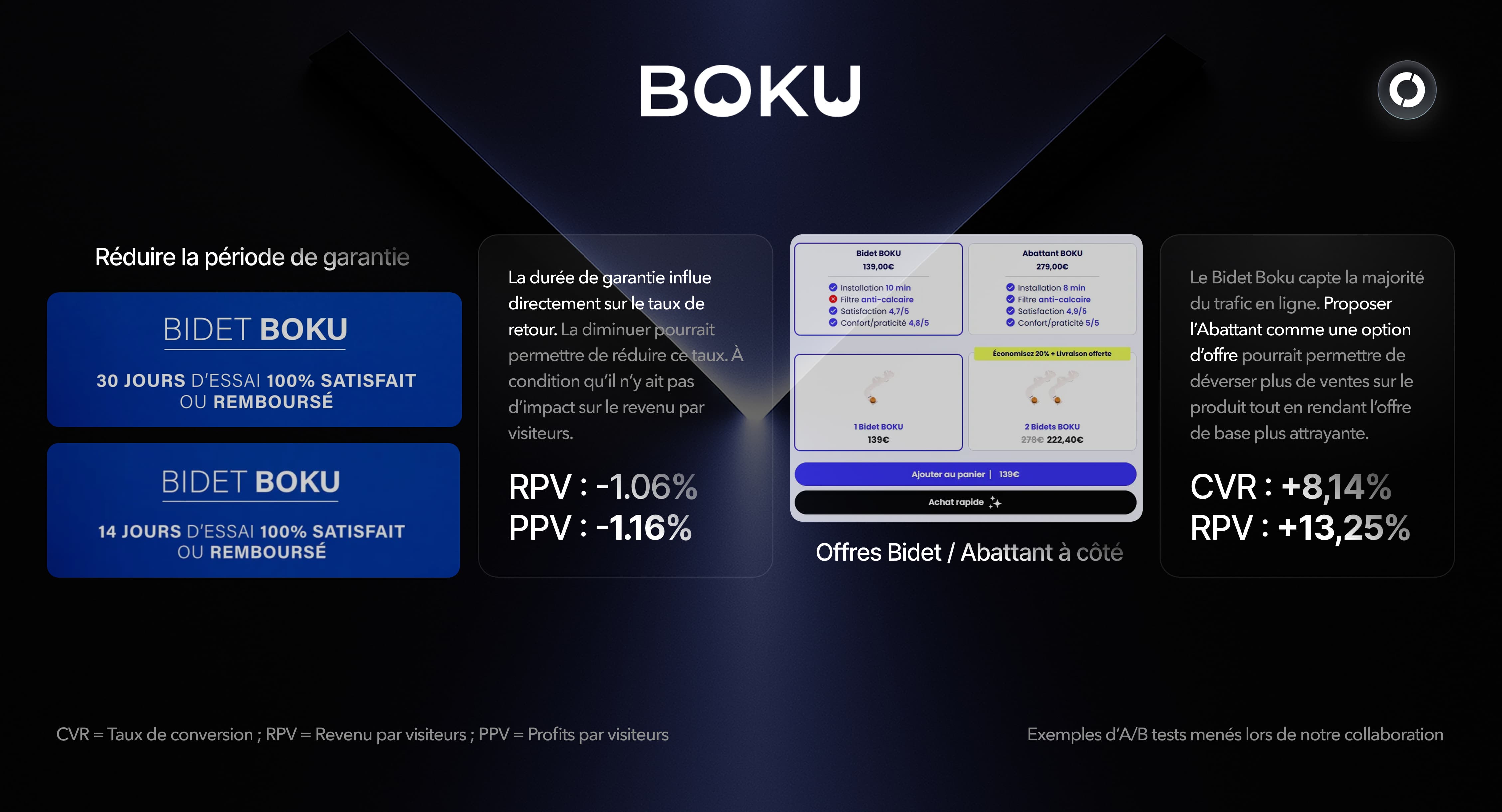 Chaque test, positif comme négatif s’inscrit dans une méthodologie globale d’apprentissages et d’itérations.Chaque résultat, influence la direction à suivre pour sécuriser plus de valeur financière tout en écartant les zones à faible impact.